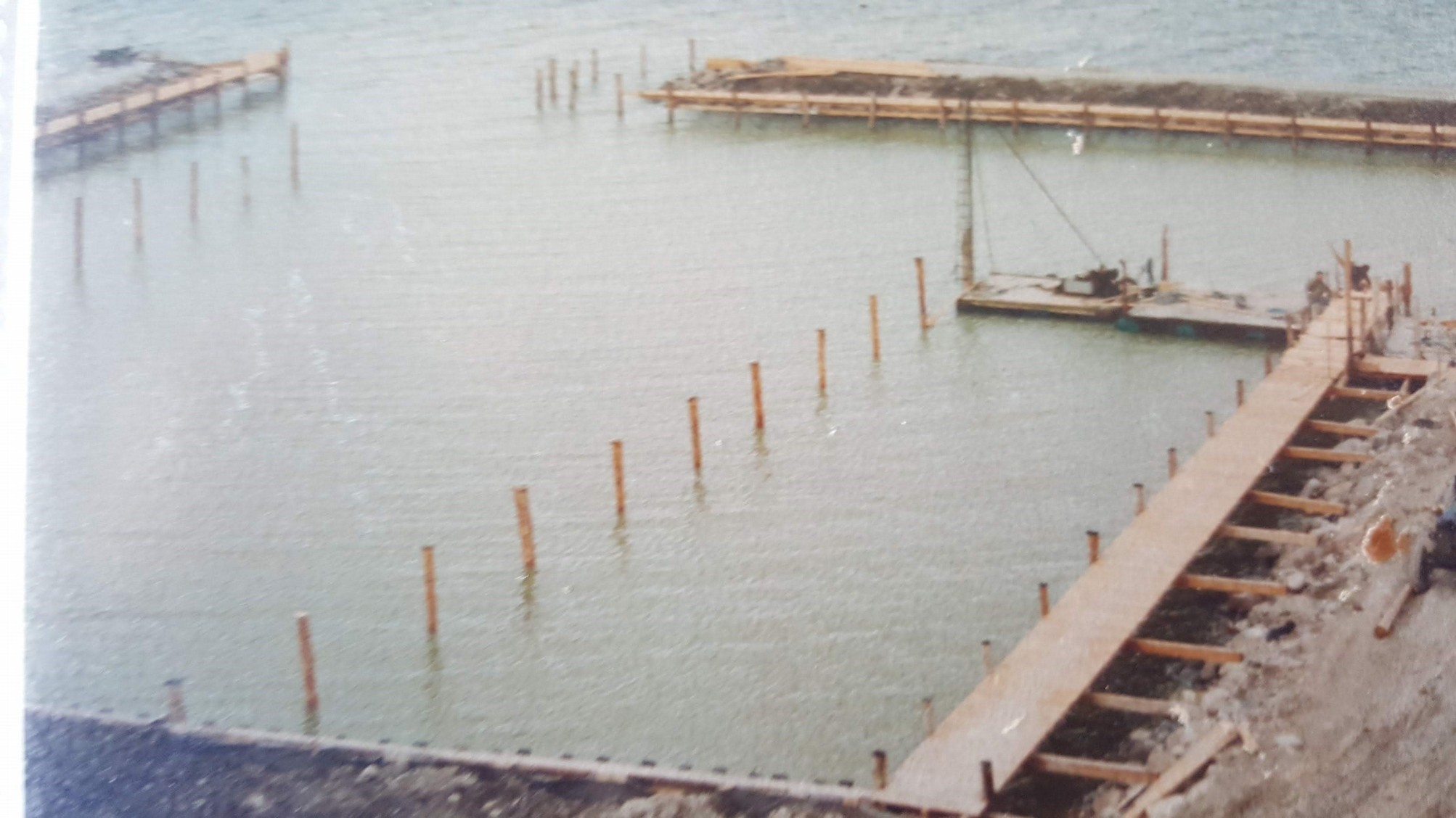 Det første, der skulle ske, var at rydde området. Det var overvokset i krat og træer. Det viste sig, at man gennem mange år havde brugt det til losseplads. I hvert tilfælde lå der gamle vaskemaskiner, køleskabe og andet affald overalt. Jeg kan ikke huske, hvad vi gjorde med det, men væk kom det. Det næste var at få lagt moler ud. Her må jeg sige, at vi fik en kolossal velvilje overalt i samfundet. Mange kom bare for at hjælpe til, og byens håndværkere og entreprenører lånte os maskiner. Vi skulle bare selv lægge diesel til.