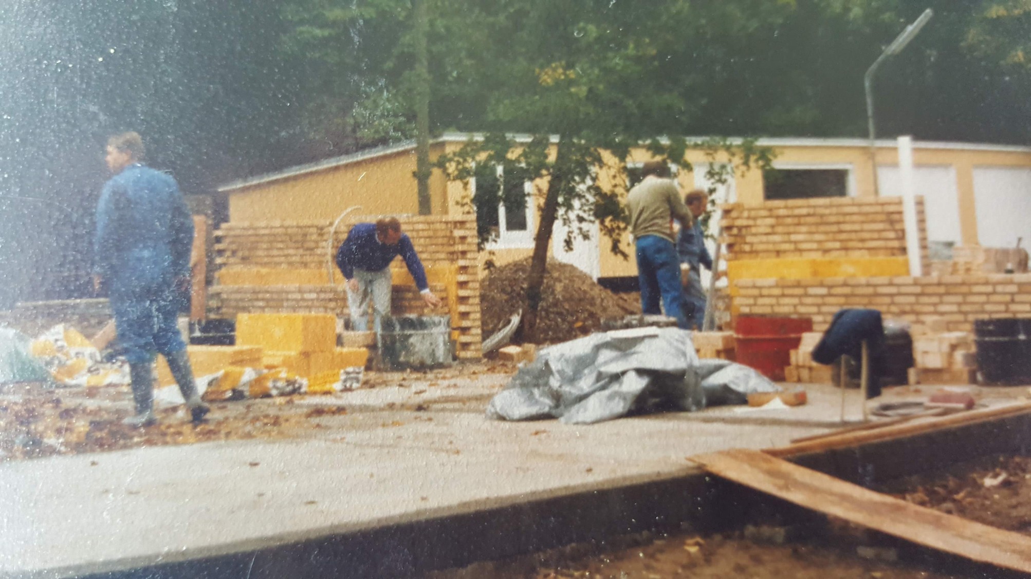 Som sagt så gjort. Altså gravede vi ud til sokkel – i hånden vel at mærke. Vi havde et par murere blandt medlemmerne. De gik i gang med at mure op, og vi andre, de af os som ikke kunne mure, var murerarbejdsmænd. Jeg må indrømme, at som tiden gik, blev vi færre og færre, der gad, og til sidst blev vi nødt til at hyre et par pensionerede murere til at gøre arbejdet færdigt. Lillejuleaftensdag lagde vi det sidste undertag. Det sneede, og der gik overgang i boremaskinerne, så de sidste skruer var en prøvelse at skrue i. Man kan sige, at vi kom i stødet.